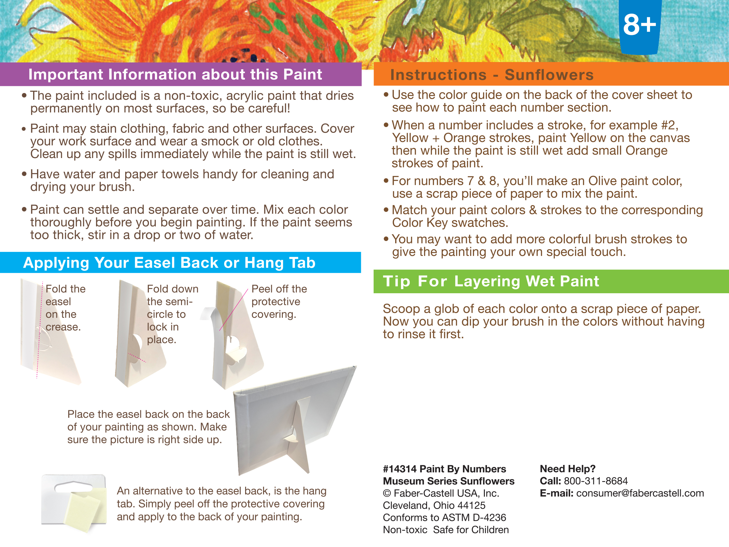 Separate color guide allows artists to follow the numbers and recreate “Sunflowers” or color in the paint by number your own unique way